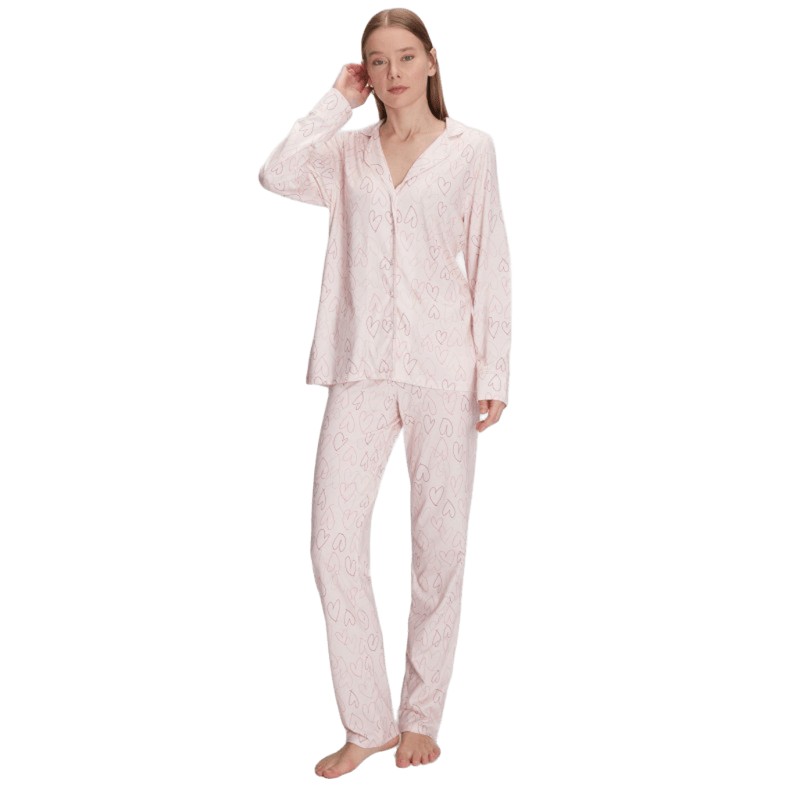 Πιτζάμα Γυναικείο Μακρύ Μανίκι Μακρύ Παντελόνι Anil-11291 ΡΟΖ