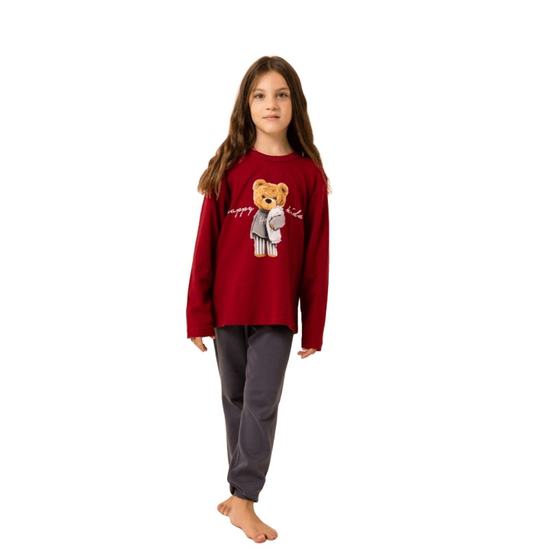 Χριστουγεννιάτικη Πιτζάμα Για Κορίτσι με Μακρύ Μανίκι και Παντελόνι Secret Point-223-762-2 ΜΠΟΡΝΤΩ