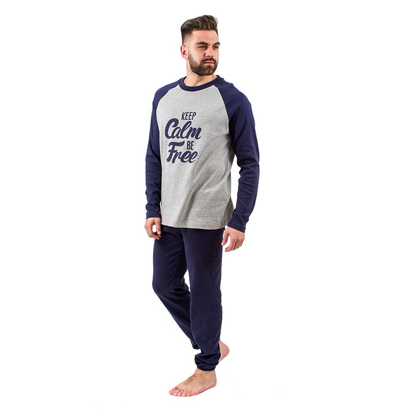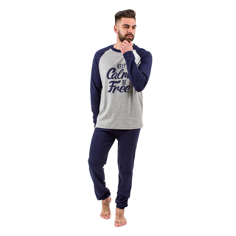 Ανδρική Πιτζάμα με Μακρύ Μανίκι και Παντελόνι Fashion Factory-Β551 ΜΠΛΕ