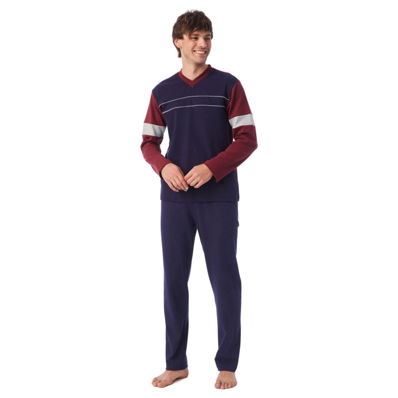 Πιτζάμα Ανδρική Μακρύ Μανίκι και Μακρύ Παντελόνι Minerva-ΜΑΡΙΝ 71125
