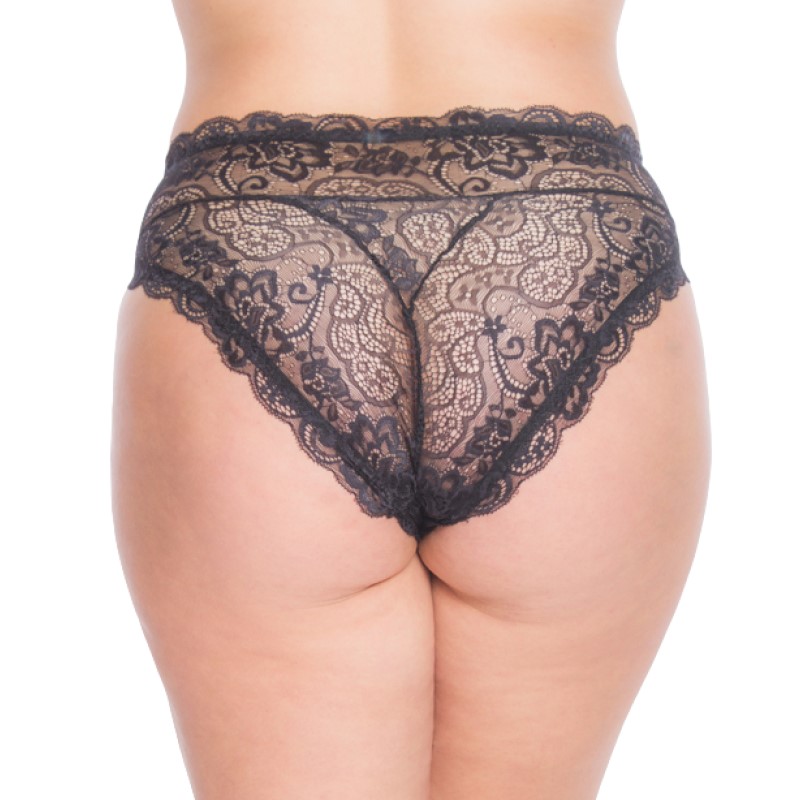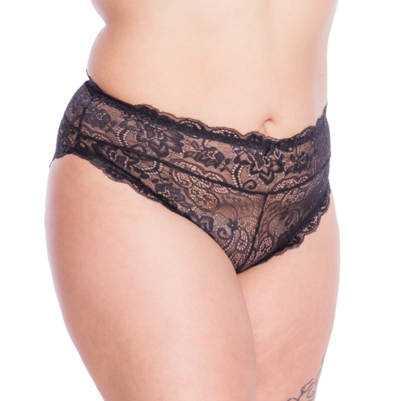 Γυναικείο Σλιπ Κανονικό με Δαντέλα (Μεγάλα Μεγέθη)-16729 ΜΑΥΡΟ