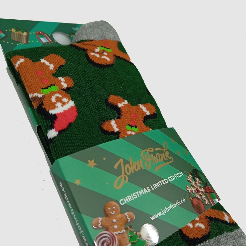 Ανδρική Κάλτσα Χριστουγεννιάτικη Christmas Gingerbread Man John Frank-JFLSFUN-CH11 ΠΡΑΣΙΝΟ