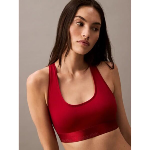 Bralette αθλητικό, χωρίς επένδυση, Calvin Klein. Σε κόκκινο χρώμα, με κόκκινο λάστιχο και το λογότυπο του Calvin Klein που θα κάνει τη διαφορά και θα εντυπωσιάσει! Με αθλητική πλάτη για τέλεια και άνετη εφαρμογή. Από απαλό ύφασμα με ελαστικές ιδιότητες που θα το κάνουν την αγαπημένη σας επιλογή όχι μόνο για καθημερινή χρήση αλλά και αθλητικές δραστηριότητες! Τα εσώρουχα Calvin Klein απευθύνονται στην σύγχρονη γυναίκα που δίνει ιδιαίτερη προσοχή στην εμφάνισή της και δεν συμβιβάζεται με τίποτα λιγότερο από αυτό που της αξίζει!