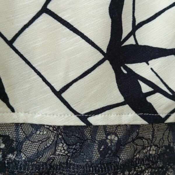 - Παντελόνι σε εμπριμέ χρώμα, με λάστιχο στη μέση για τέλεια εφαρμογή και δαντέλα με μεταξένια αίσθηση στο σώμα σας.