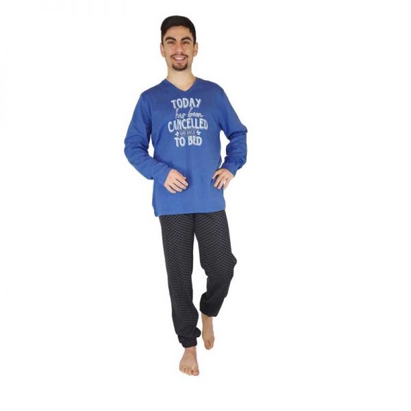 Ανδρική πυτζάμα με μακρύ μανίκι και μακρύ παντελόνι .