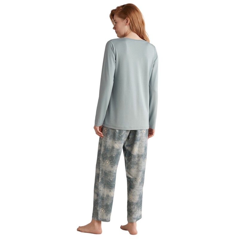 • Γυναικεία πιτζάμα με μακρύ μανίκι και μακρύ παντελόνι με σχέδιο.