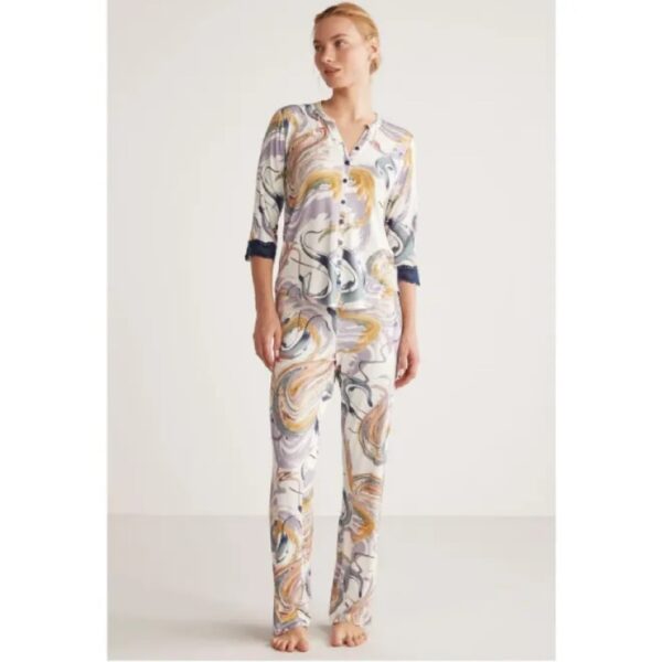 Γυναικεία, κουμπωτή πυτζάμα μακρύ μανίκι και παντελόνι.