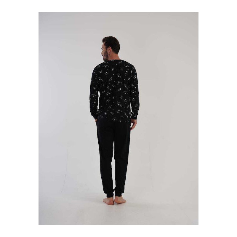 Ανδρική Πιτζάμα με Μακρύ Μανίκι και Παντελόνι Vienetta-304013 ΜΑΥΡΟ ποσότητα