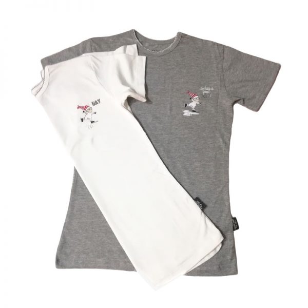 Σετ φανελάκια παιδικά για κορίτσι, με κοντό μανίκι και στρογγυλή λαιμόκοψη. Στη συσκευασία περιλαμβάνονται δύο φανελάκια, ένα λευκό και ένα γκρι, με διακριτική στάμπα της Happy People. Από βαμβακερό ύφασμα, φιλικό προς το δέρμα!