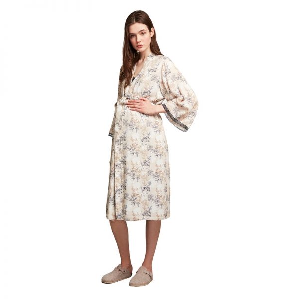 Γυναικεία ρόμπα σταυρωτή σε εμπριμέ χρώμα.