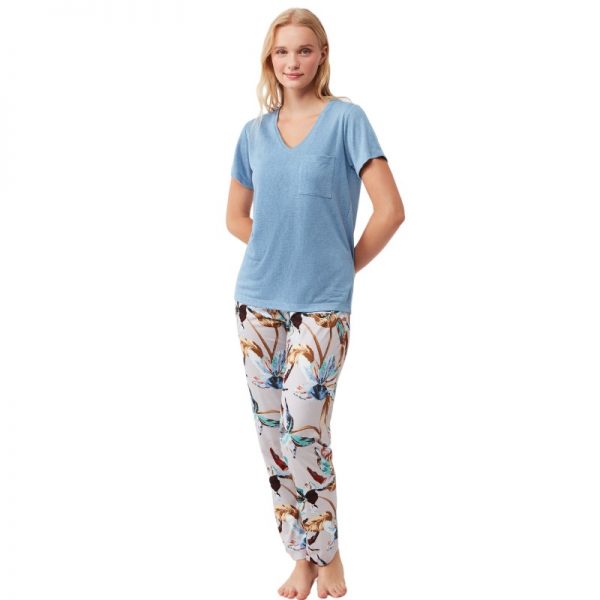 Πυτζάμα Γυναικεία Κοντό Μανίκι & Μακρύ Παντελόνι Penye Mood-9215PM ΓΑΛΑΖΙΟ - Χριστίνα - Κατάστημα ρούχων & εσωρούχων