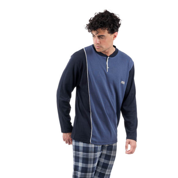 Ανδρική πιτζάμα με μακρύ μανίκι και μακρύ παντελόνι.