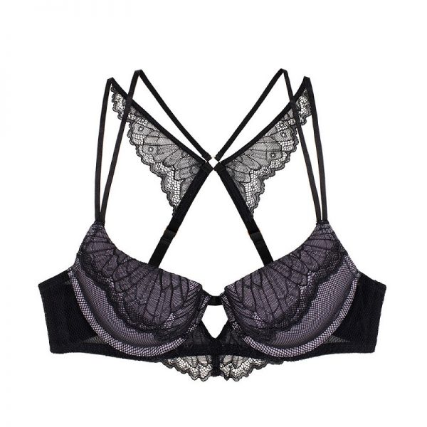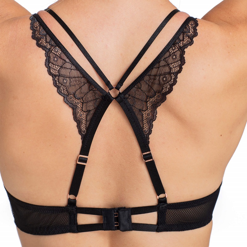 • Το σουτιέν είναι σε μαύρο χρώμα με σχέδιο δαντέλας και τούλι.