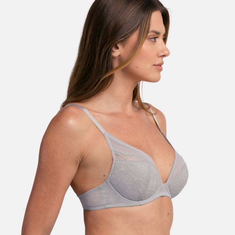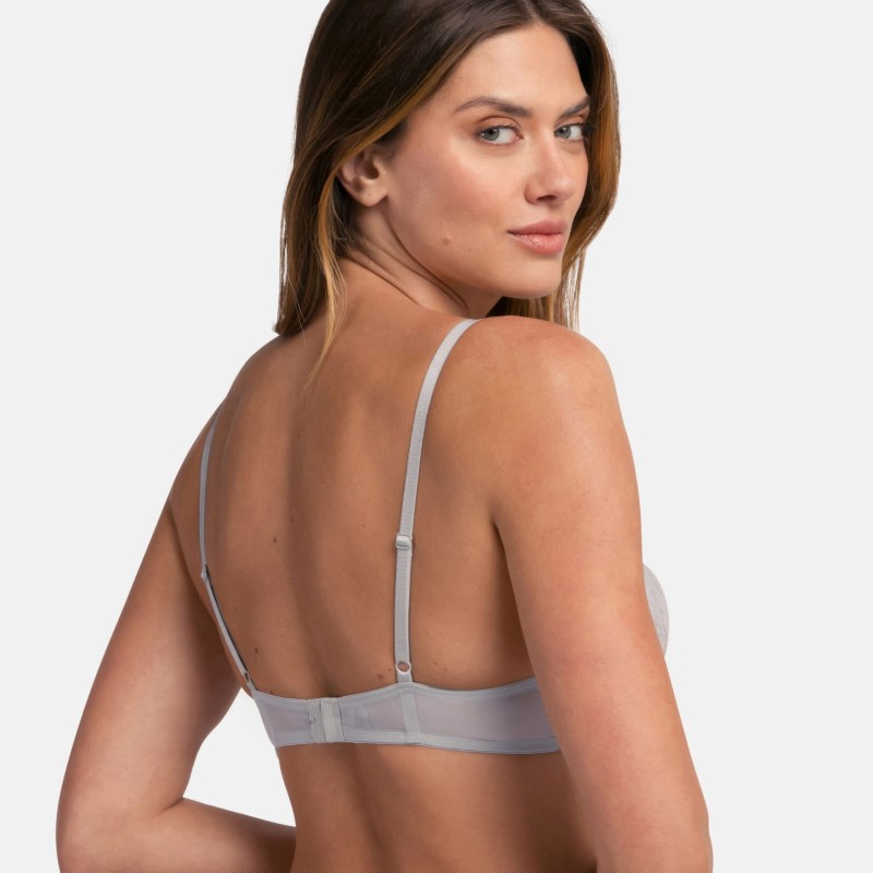 • Το σουτιέν σε γκρι χρώμα με σχέδιο δαντέλας και τούλι.