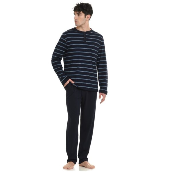 Πυτζάμα Ανδρική Κουμπωτή Μακρύ Μανίκι και Μακρύ Παντελόνι Primavera-N522 ΜΑΡΙΝ