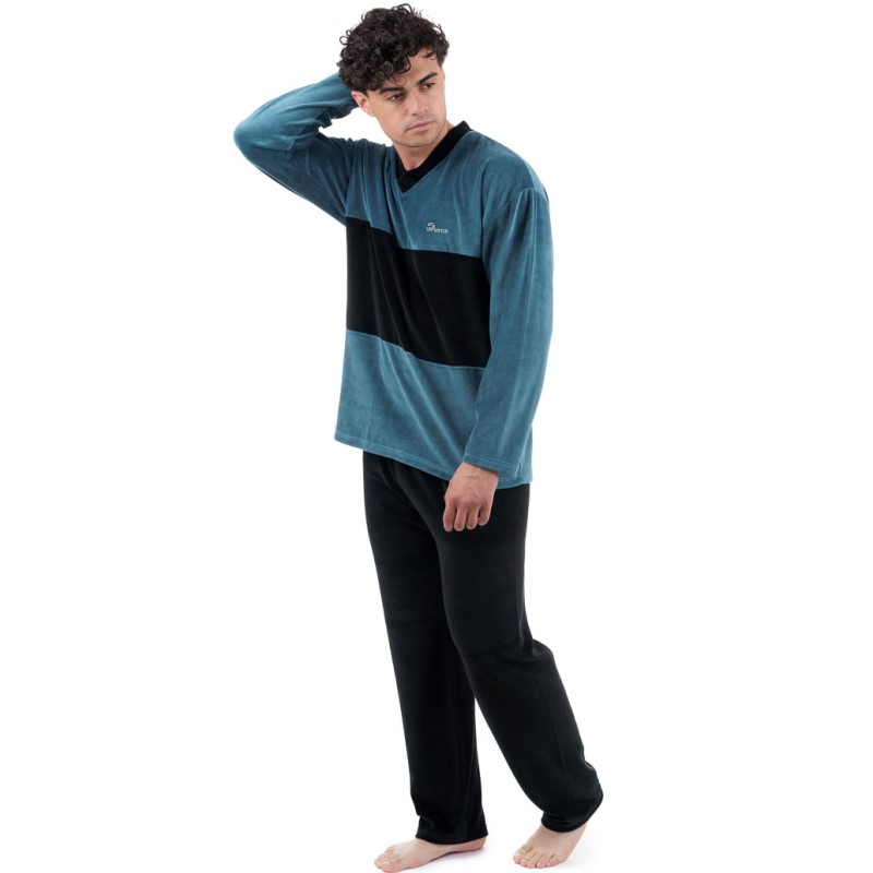 Πυτζάμα Ανδρική Βελούδινη Μακρύ Μανίκι & Μακρύ Παντελόνι Dustin-3072