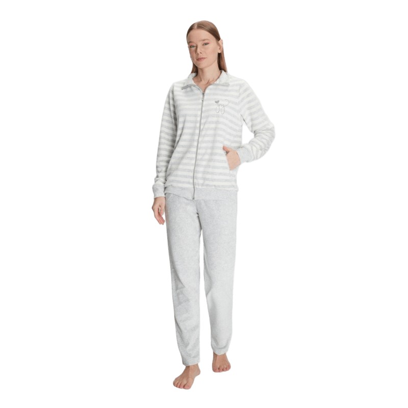 Πιτζάμα Βελούδινη Γυναικείο Μακρύ Μανίκι Μακρύ Παντελόνι Anil-11326 ΓΚΡΙ