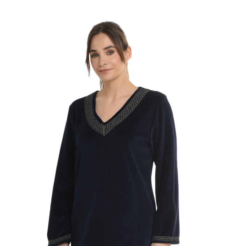 Homewear ΓυναικείοΒελούδινο Με Μακρύ Μανίκι Primavera-N222 ΜΑΡΙΝ