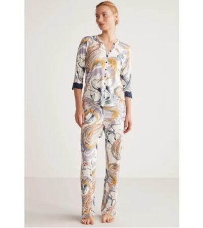 Πιτζάμα Γυναικεία Με Μακρύ Μανίκι & Μακρύ Παντελόνι Penye Mood-9521PM ΠΟΛΥΧΡΩΜΟ