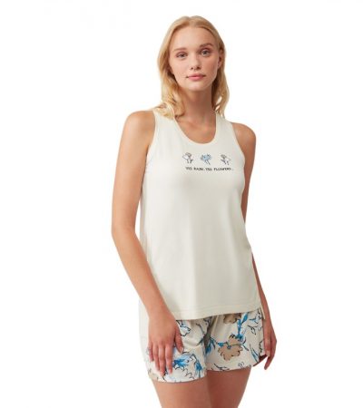 Baby-Doll Γυναικείο Σατέν με Λεπτή Ράντα & Κοντό Παντελόνι Penye Mood Exclusive-Λευκό