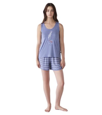Πιτζάμα Γυναικεία Με Λεπτή Ράντα & Κοντό Παντελόνι Catherine s-2337CA ΠΟΛΥΧΡΩΜΟ