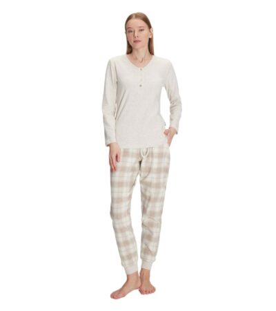 Πιτζάμα Γυναικεία Homewear Με Μακρύ Μανίκι & Μακρύ Παντελόνι Anil-11317 KOKKINO