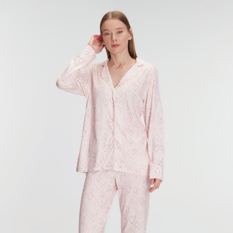 - Γυναικεία πιτζάμα κουμπωτή με μακρύ μανίκι και μακρύ παντελόνι.