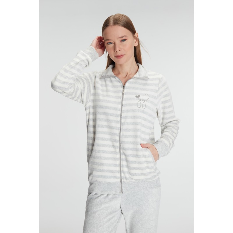 Πιτζάμα Βελούδινη Γυναικείο Μακρύ Μανίκι Μακρύ Παντελόνι Anil-11326 ΓΚΡΙ