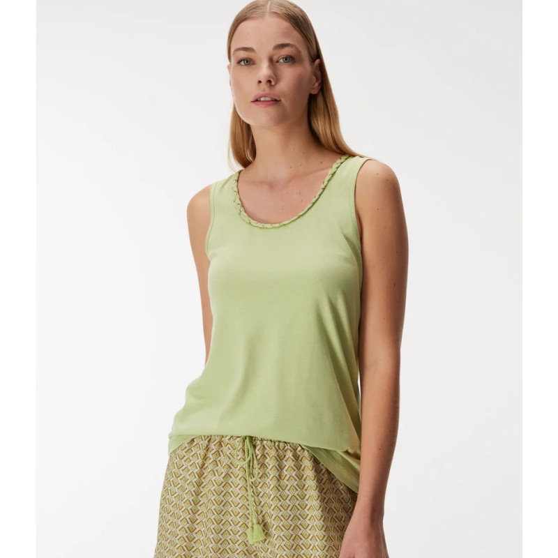 - Μπλούζα σε μακό ύφασμα με φαρδιά τιράντα και στρόγγυλη λαιμόκοψη.