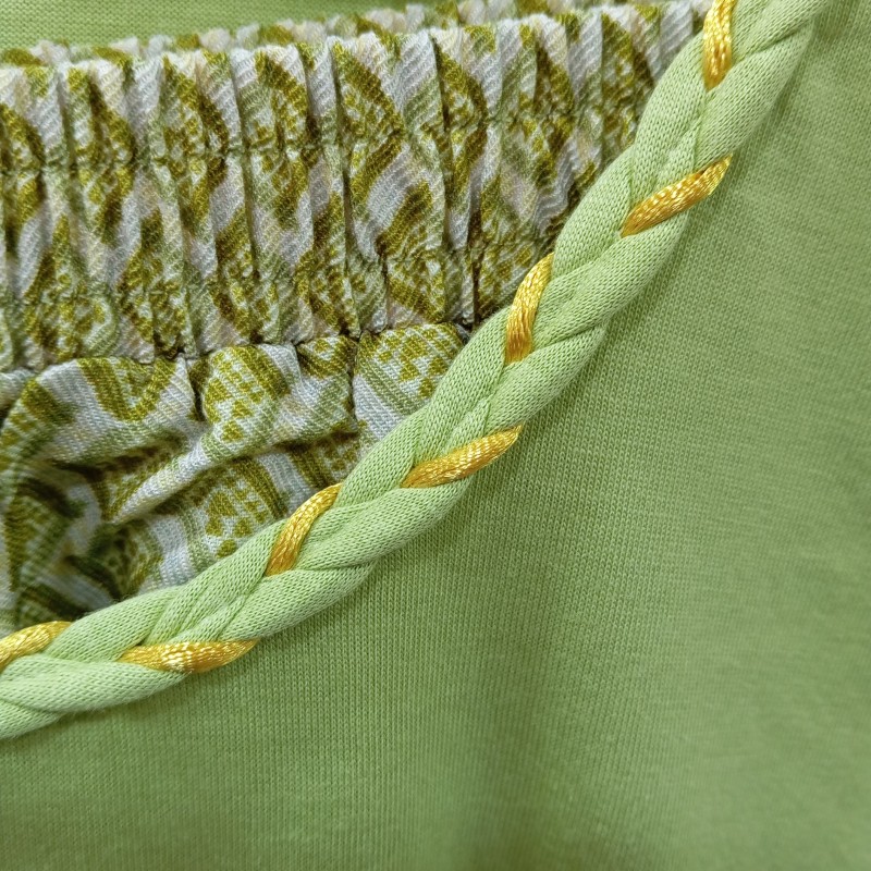 - Παντελόνι σε εμπριμέ χρώμα, με λάστιχο στη μέση για τέλεια εφαρμογή.