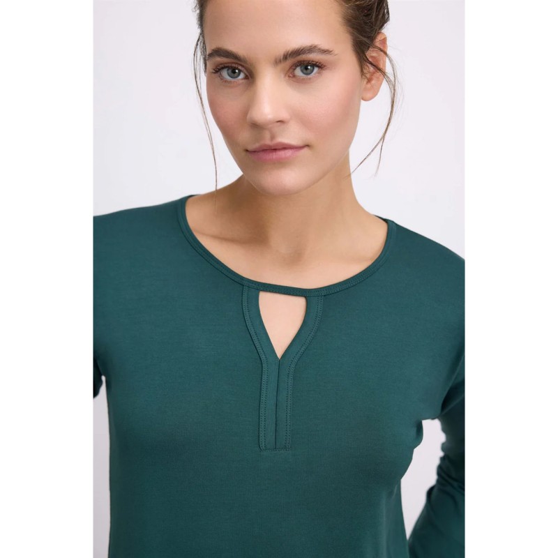 - Η μπλούζα είναι με στρογγυλή λαιμόκοψη, με ίσια μανίκια σε χρώμα κυπαρισσί.