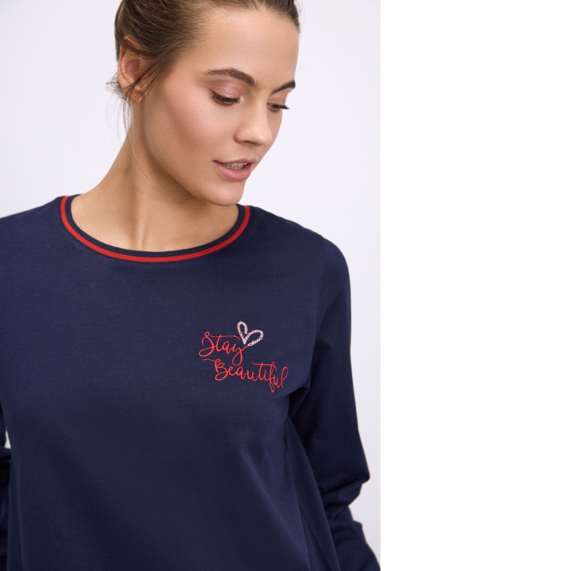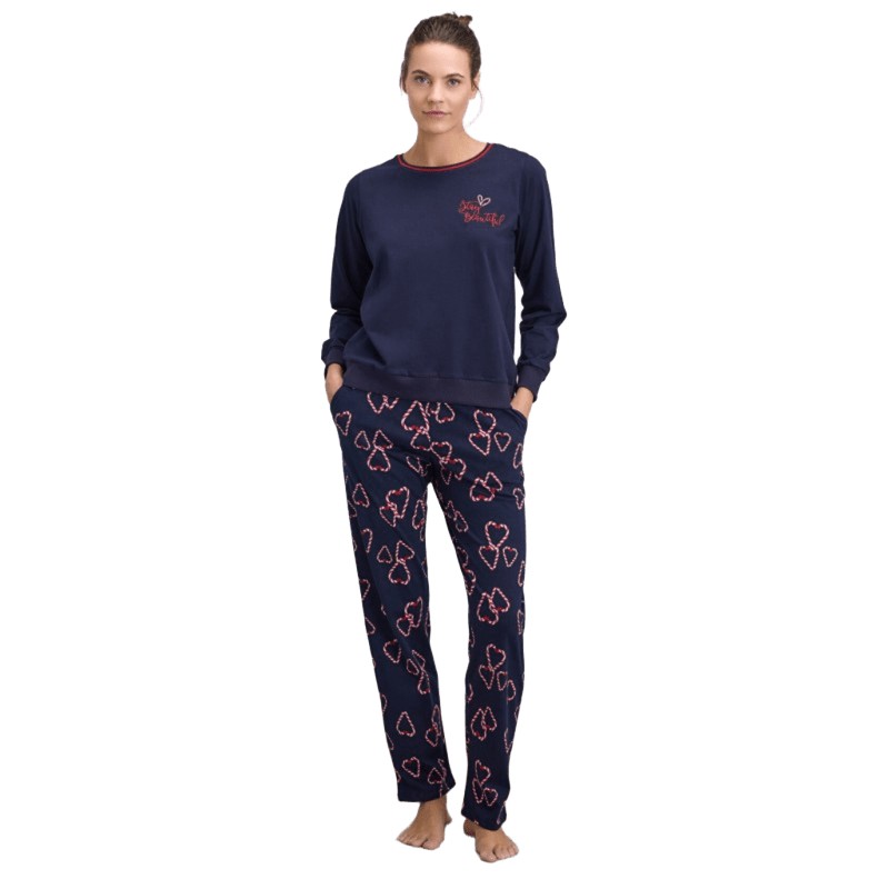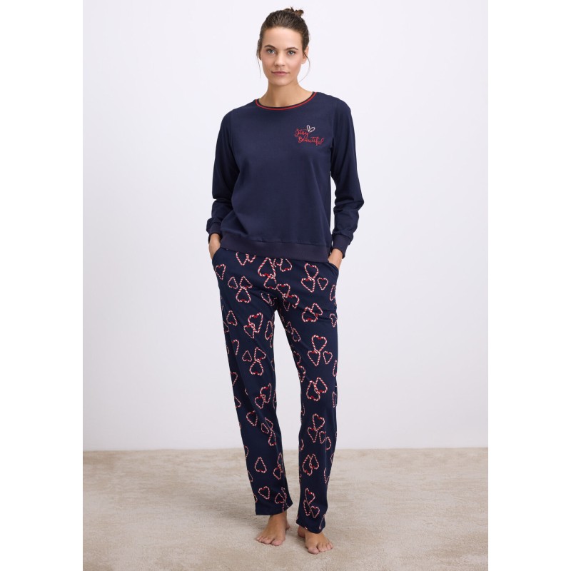 - Γυναικεία πιτζάμα με μακρύ μανίκι και μακρύ παντελόνι.