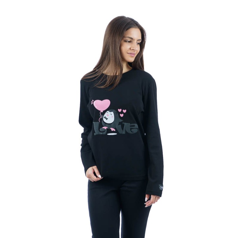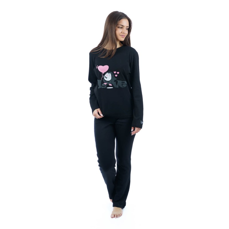 Γυναικεία Πιτζάμα με Μακρύ Μανίκι και Παντελόνι Sara-1280 ΜΑΥΡΟ