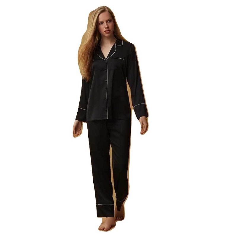 Γυναικεία, κουμπωτή σατέν πυτζάμα μακρύ μανίκι και παντελόνι .
