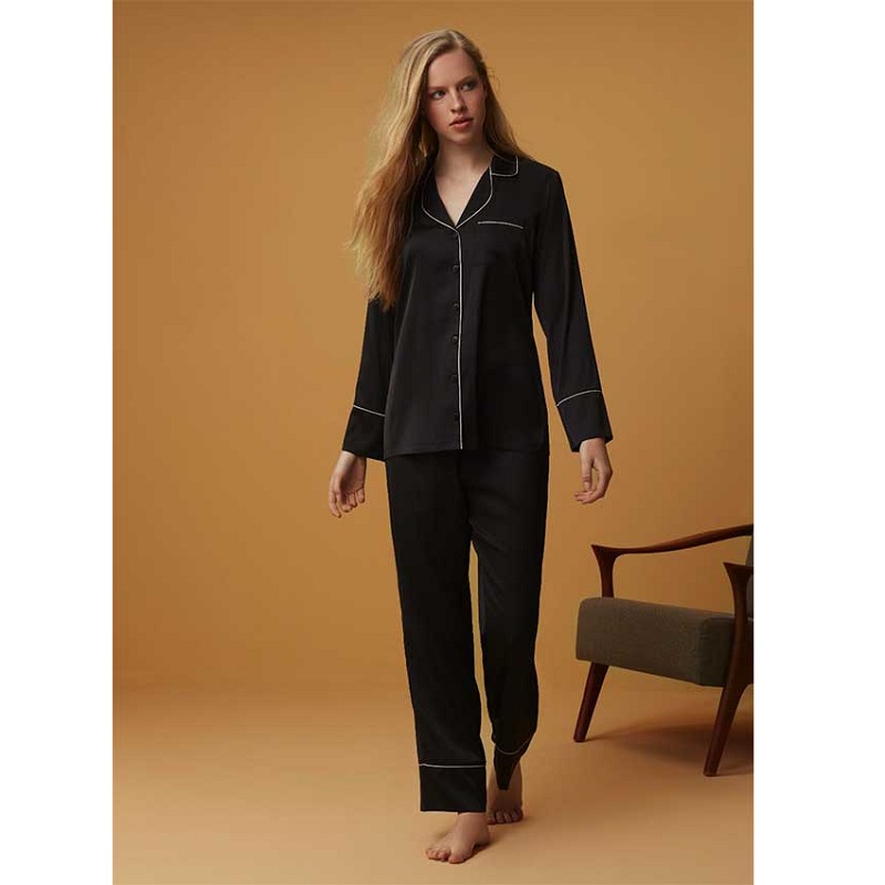 Πυτζάμα Γυναικεία Με Μακρύ Μανίκι & Μακρύ Παντελόνι Κουμπωτή Σατέν Penye Mood Exclusive