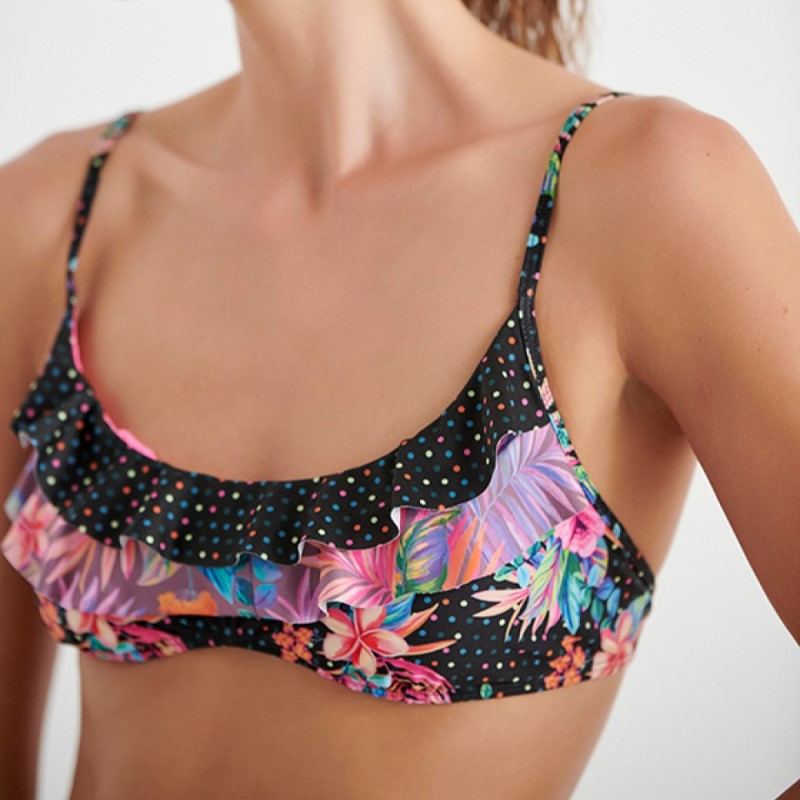 • Γυναικείο μαγιό τοπ μπουστάκι με διακοσμητικό βολάν.