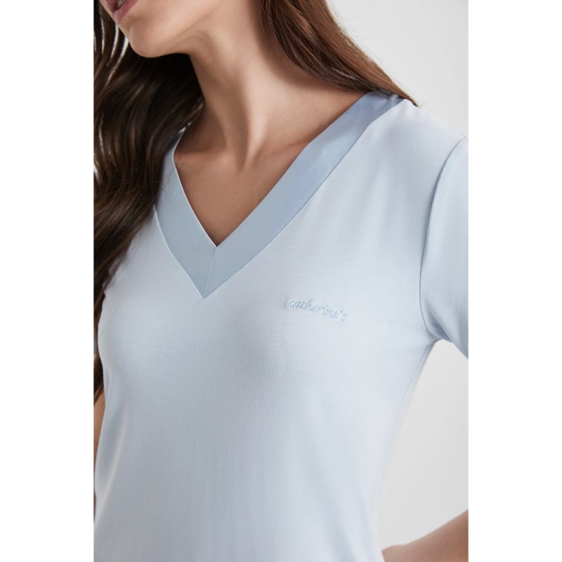 - Μπλούζα με κοντό μανίκι, με V λαιμόκοψη.