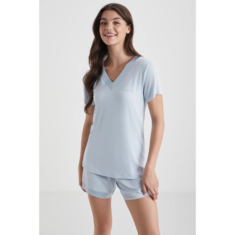 Πιτζάμα Γυναικεία Με Λεπτή Ράντα & Κοντό Παντελόνι Catherine s-2734 ΣΙΕΛ