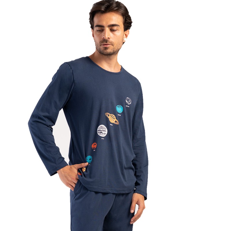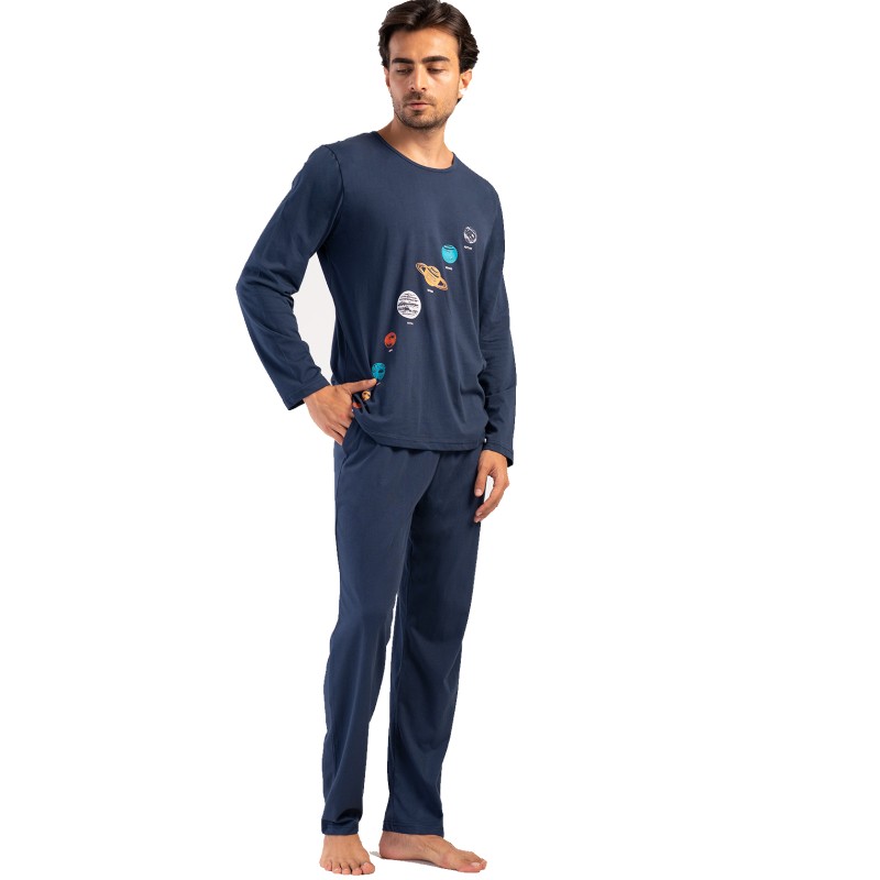- Ανδρική πυζάμα με μακρύ μανίκι και μακρύ παντελόνι.