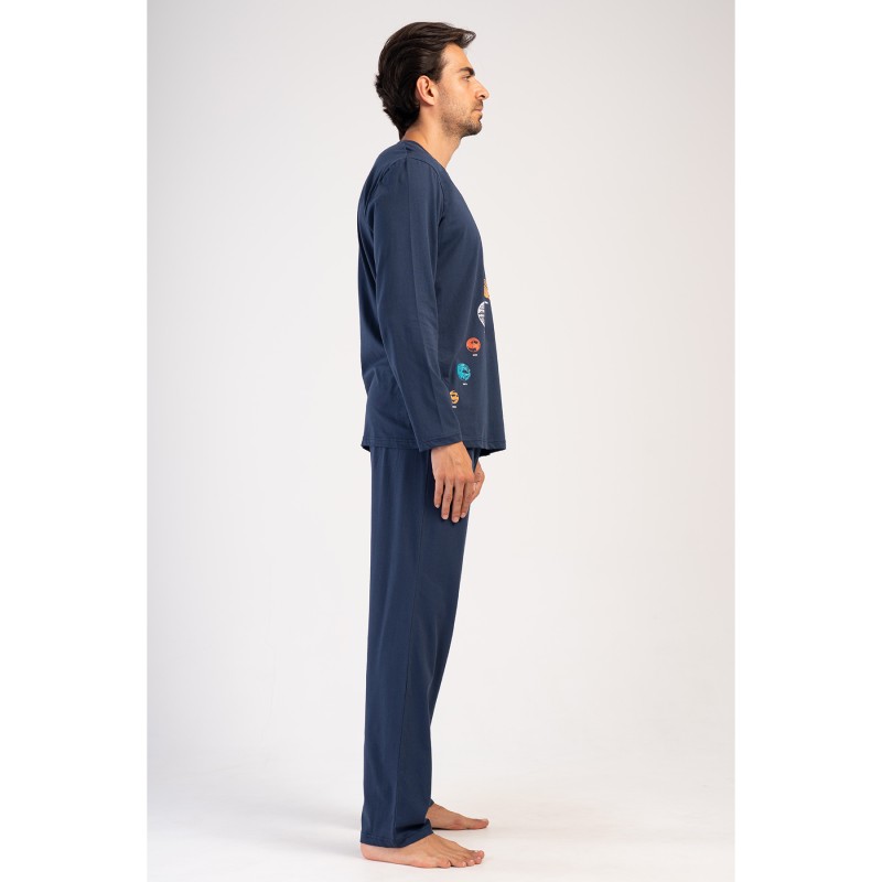 Ανδρική Πιτζάμα με Μακρύ Μανίκι και Παντελόνι Vienetta-405125 ΜΠΛΕ