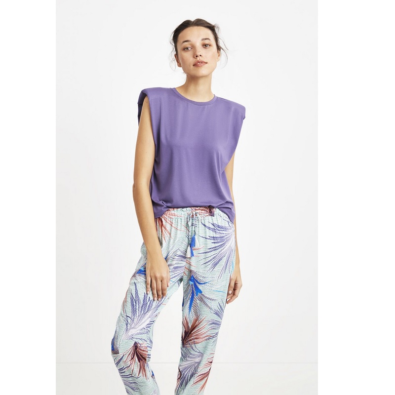 - Μπλούζα σε μωβ χρώμα χωρίς μανίκι, με στρογγυλή λαιμόκοψη.