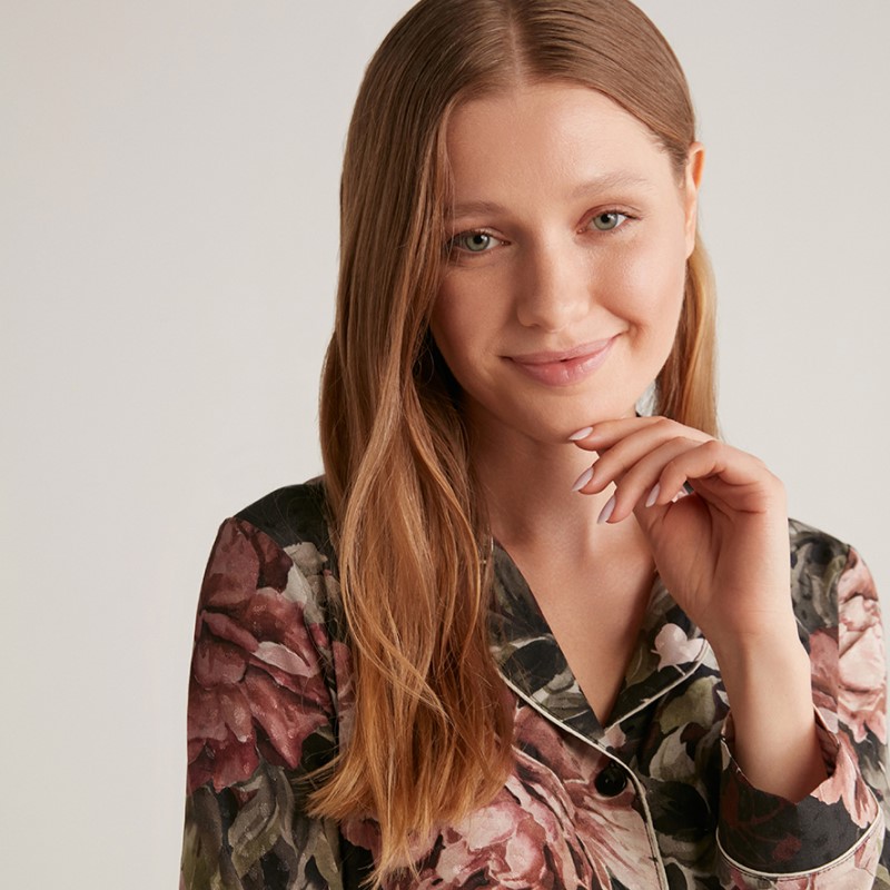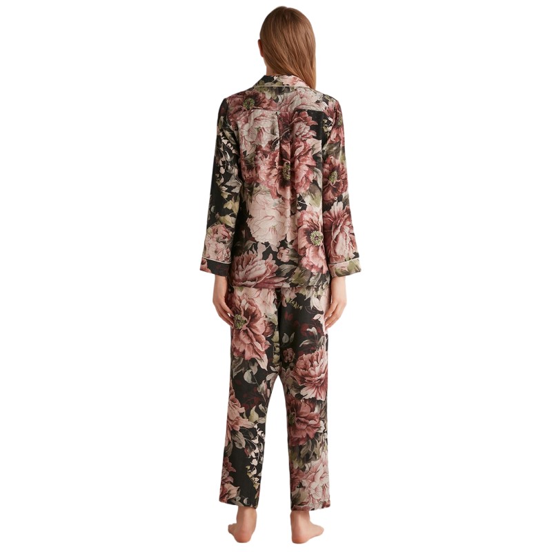 • Γυναικεία, κουμπωτή πιτζάμα με μακρύ μανίκι και παντελόνι με λάστιχο στην μέση για καλύτερη εφαρμογή.