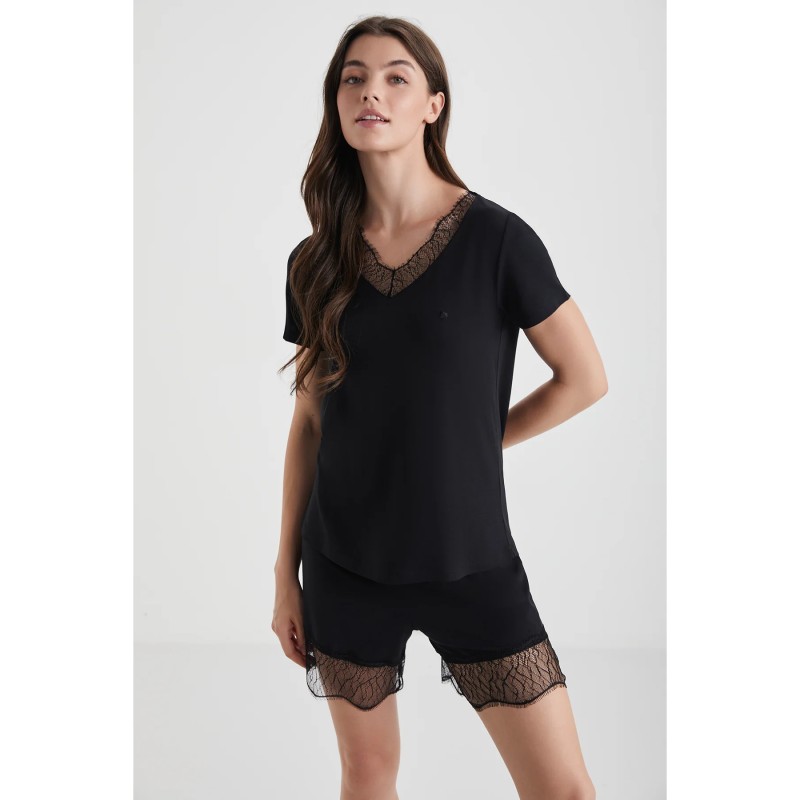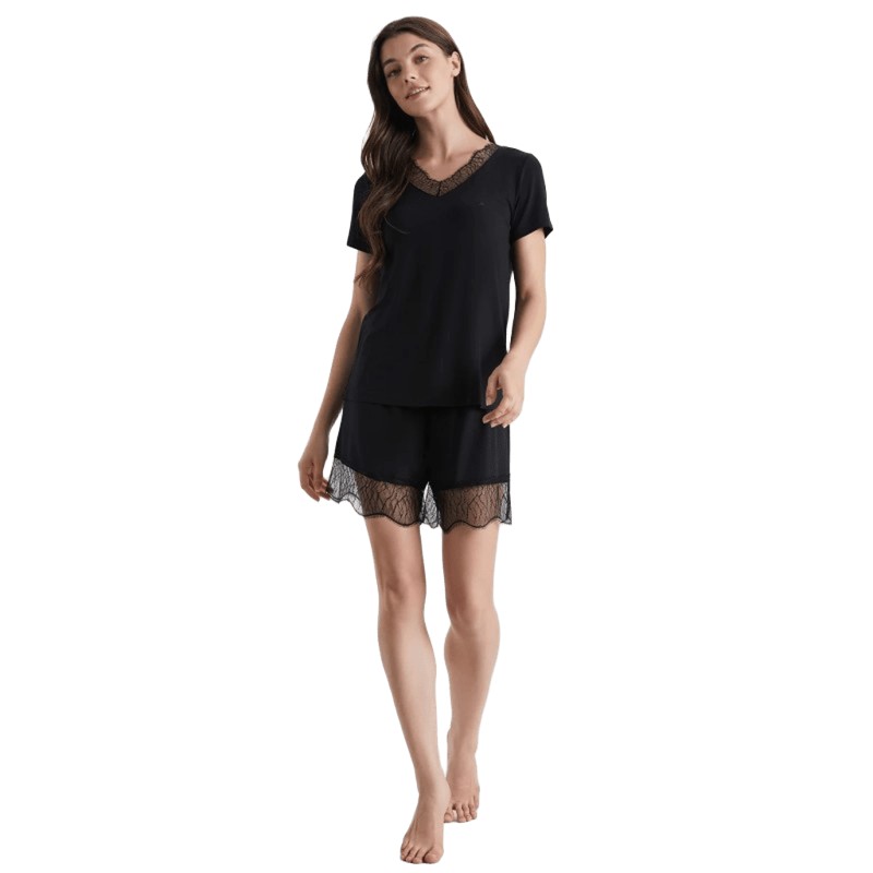 Πιτζάμα Γυναικείο Κοντό Μανίκι Κοντό Παντελόνι Penye Mood-9839 ΜΑΥΡΟ