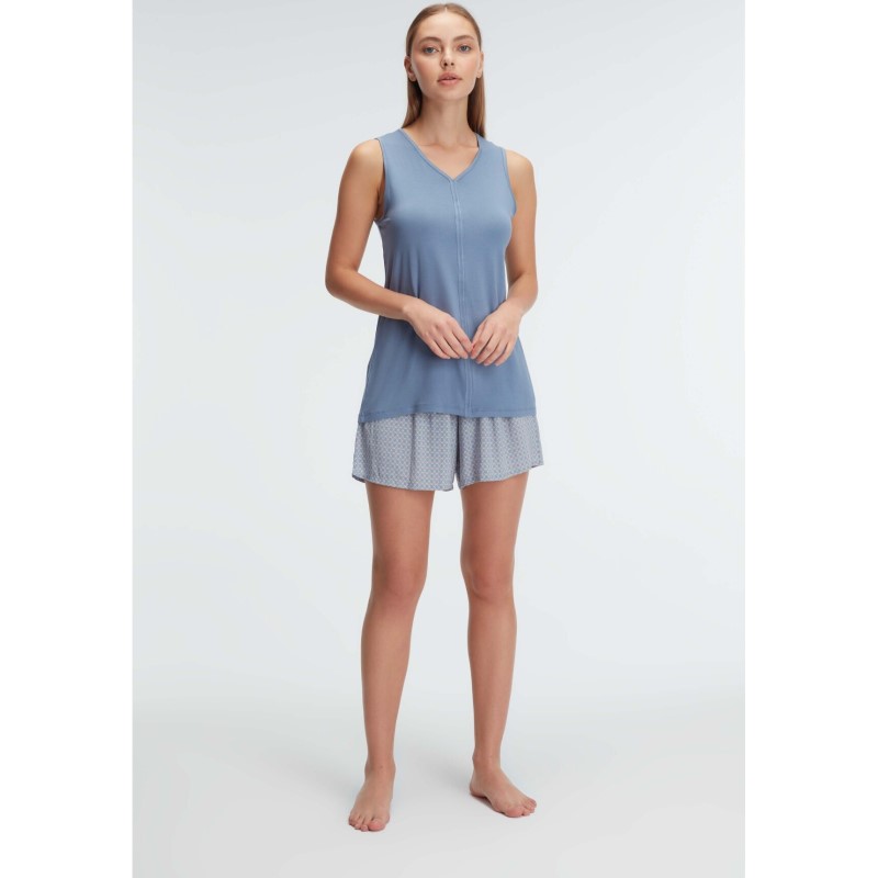 Πιτζάμα Γυναικείο Φαρδιά Ράντα Κοντό Παντελόνι Anil 9924 ΣΙΕΛ
