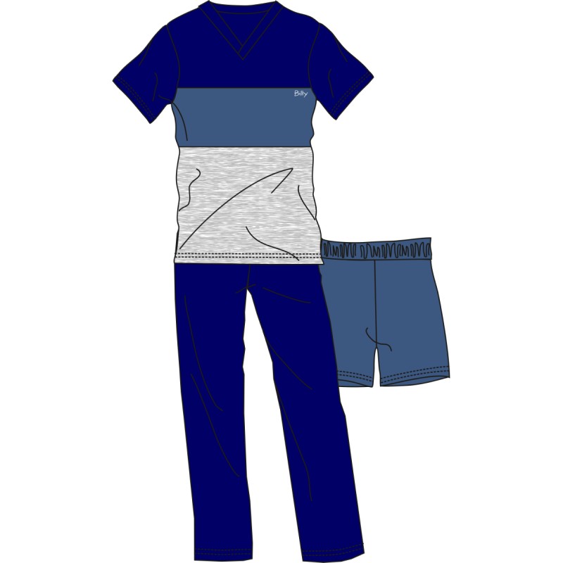 Πιτζάμα Ανδρική Κοντό Μανίκι & 2 Παντελόνια Fashion Factory
