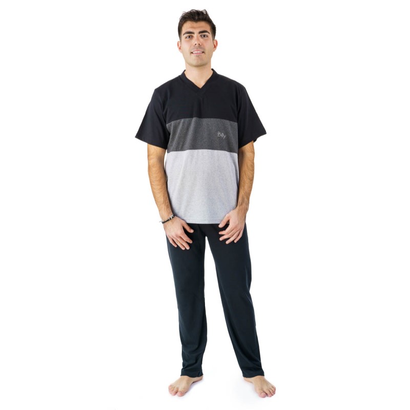 Πιτζάμα Ανδρική Κοντό Μανίκι & 2 Παντελόνια Fashion Factory-B517 ΜΑΥΡΟ