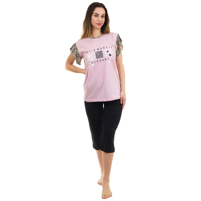 Πιτζάμα Γυναικείο Κοντό Μανίκι Κάπρι Παντελόνι Billy-B676 ΡΟΖ