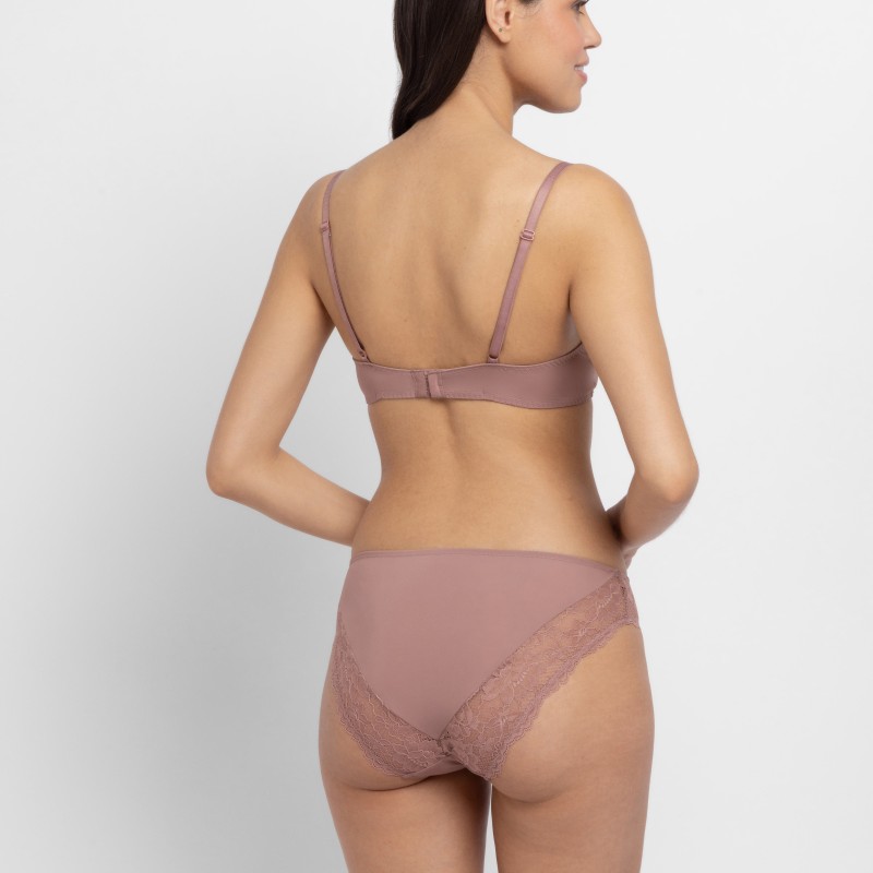 - Το 1ο σλιπ είναι σε καφέ χρώμα με σχέδιο δαντέλας.