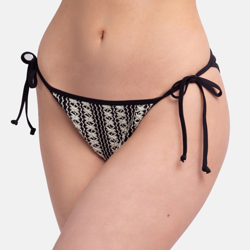 - Μαγιό slip κανονικό-ελαφρώς κοφτό στο πίσω μέρος, λεπτό και δετό στο πλάι.