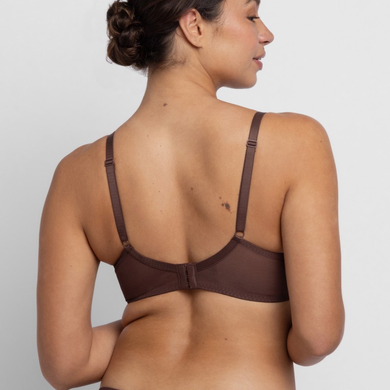 - Το καφέ σουτιέν είναι με σχέδιο δαντέλας.